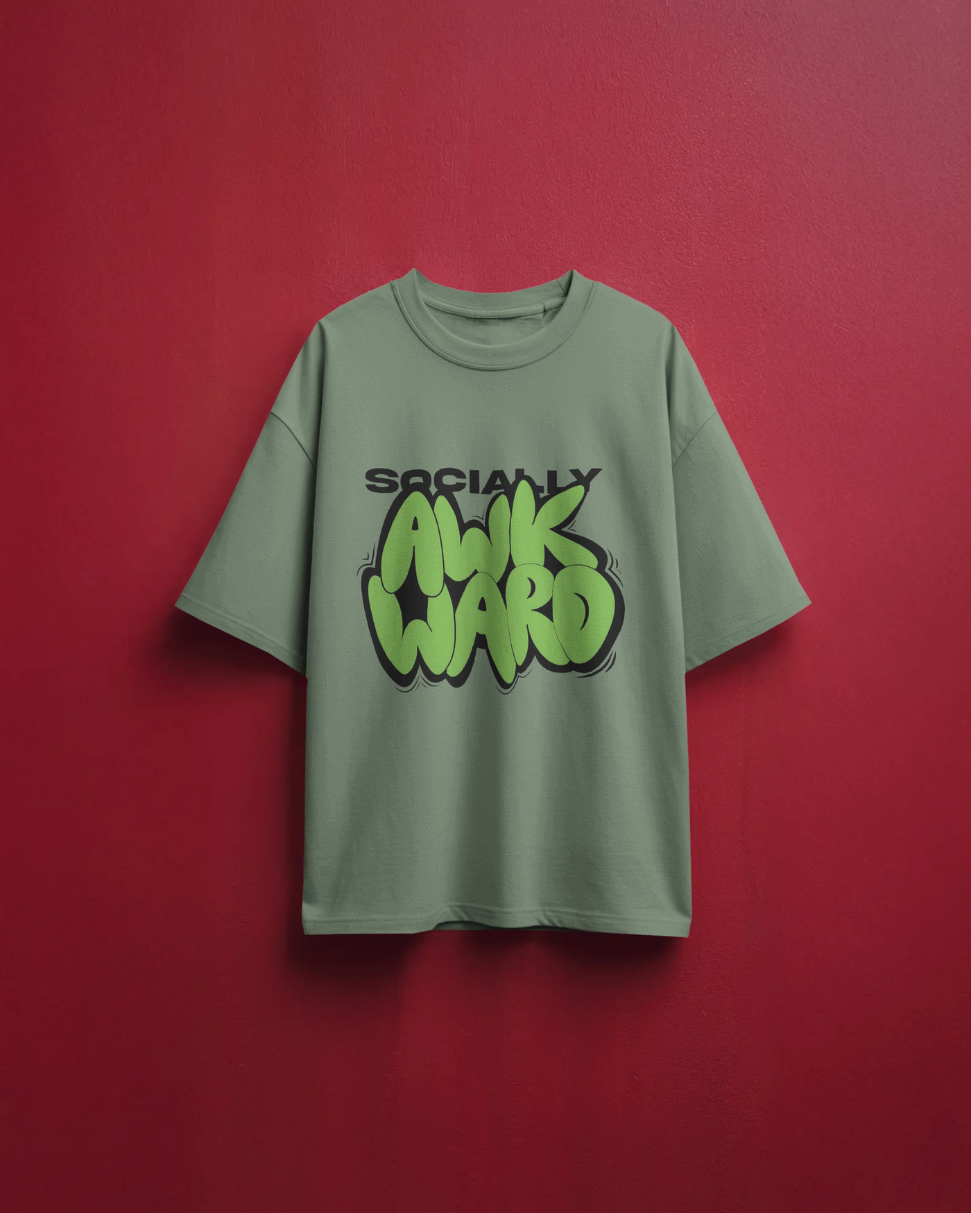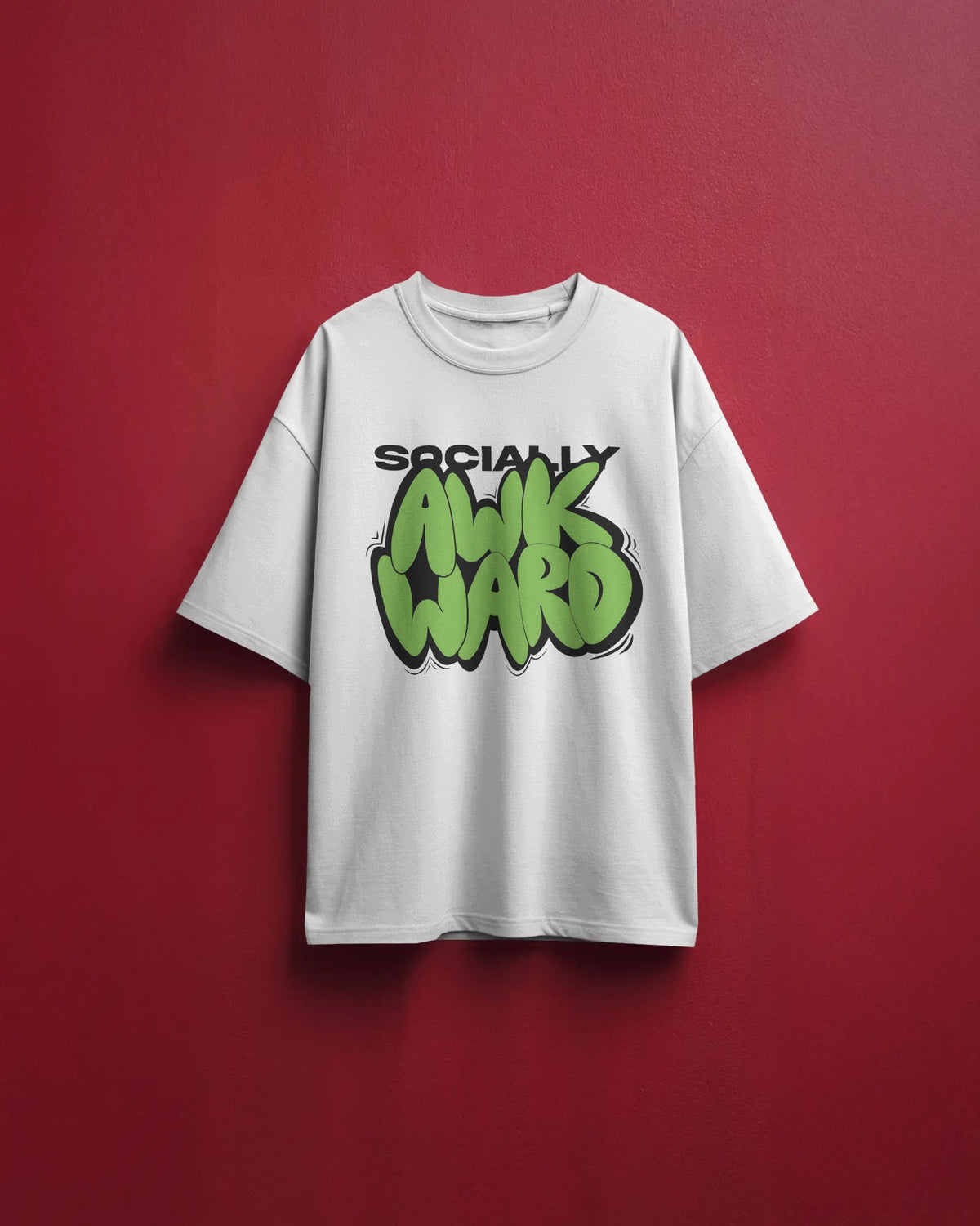 Men's Socially awkward typographic Oversized Tshirt - S / White