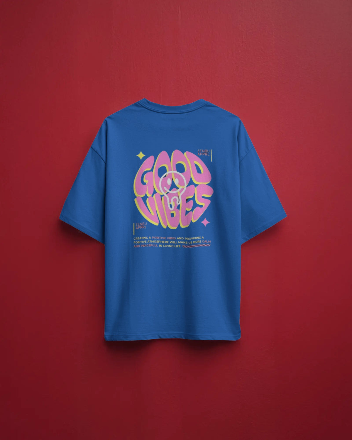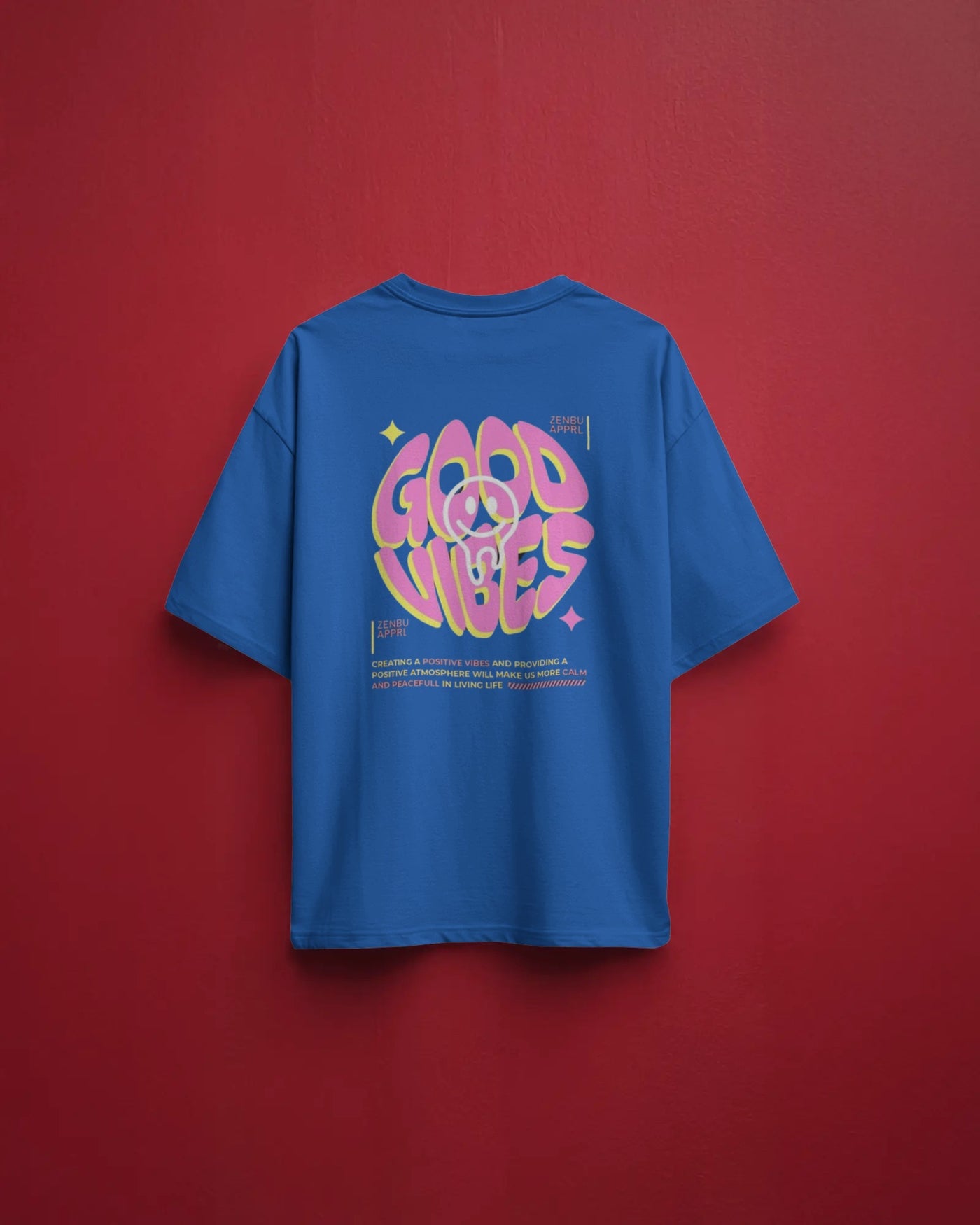 Men's Black Good Vibes Backprint Oversized Tshirt