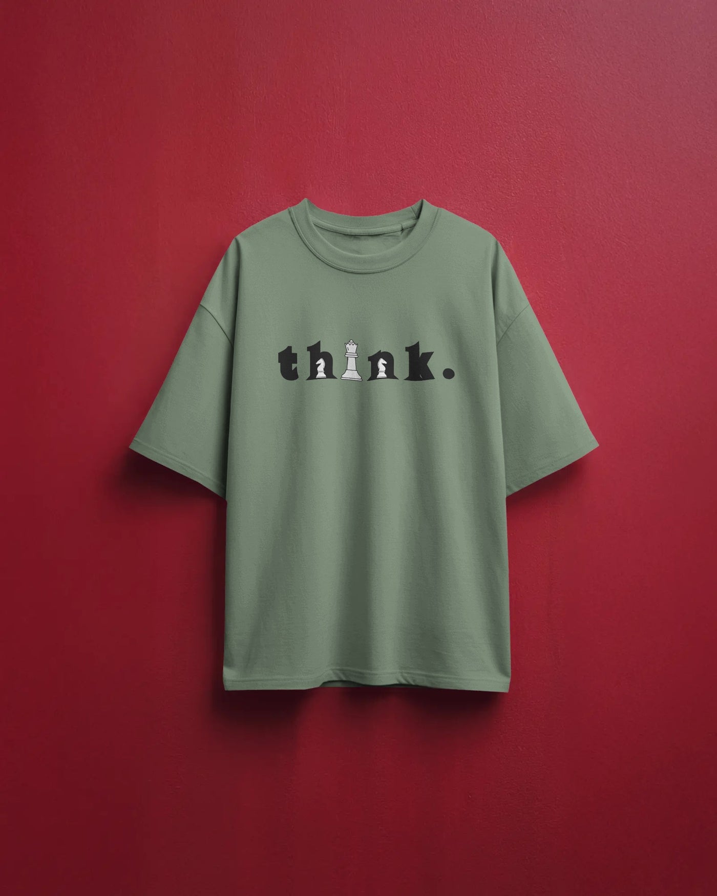 Men's "Think" Typographic Oversized Tshirt - S / Beige